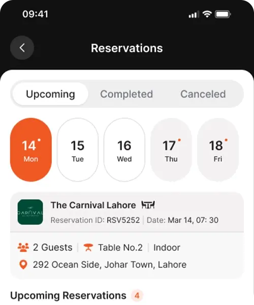 Select your restaurant, choose a date and time, and confirm your reservation in seconds.