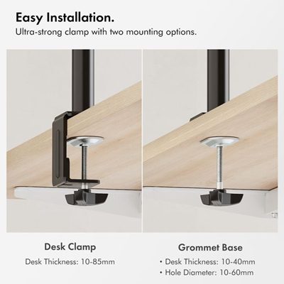 Monitor stands taking up too much desk space? Then take a look at the fully adjustable VonHaus Double Arm Desk Mount! A stylish and convenient way to free up space on overloaded desks, the mount offers a reliable solution for those working from two screens. This strong steel dual mount lets you view both screens comfortably, giving you the freedom to fully adjust screen positioning according to your individual needs.