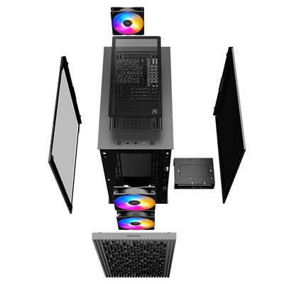 The MATREXX 40 3FS Micro-ATX case packs massive value in a tiny chassis with impressive cooling support for max airflow, three tri-color LED fans and a solid tempered glass panel.