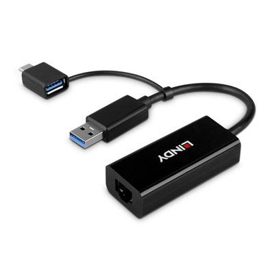 The Lindy USB 3.2 Gen 1 Gigabit Ethernet Converter allows users to conveniently connect a notebook or ultrabook to a Gigabit Ethernet network via a Type A USB or a USB Type C port.