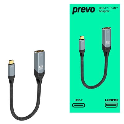 Prevo USBC-HDMI-ADA Display Converter Adapter, USB Type-C (M) to HDMI (F), 0.2m, Black & Silver, HDMI 2.0, Supports up to 4K@60Hz, Braided Cable, Retail Box Packaging
