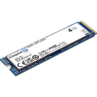 Kingston NV3 (SNV3S/4000G) 4TB NVMe SSD, M.2 Interface, PCIe Gen4, 2280, Read 6000 MB/s, Write 5000 MB/s, 3 Year Warranty