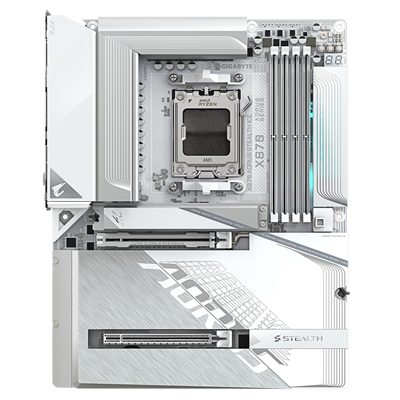 Gigabyte X870 AORUS STEALTH ICE AMD AM5 Socket Motherboard, ATX, 4x DDR5 Slots, 3x M.2 Socket, 5GbE LAN, 1x HDMI Port / 2x USB-C (USB4)