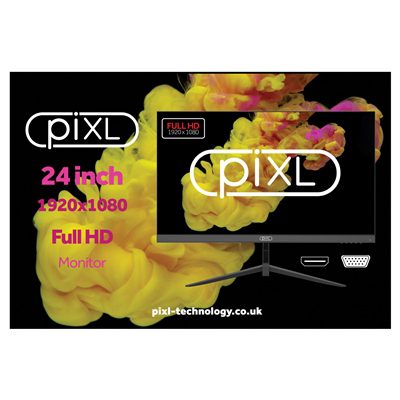 piXL PX24IVHFPD 24 Inch Frameless Monitor, Widescreen IPS LCD Panel, 5ms Response Time, 100Hz Refresh Rate, Full HD 1920 x 1080, VGA / HDMI, Internal PSU 16.7 Million Colour Support, Black Finish, 3 Year Warranty