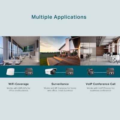 The PoE+ Injector TL-POE160S fully complies with IEEE 802.3af/at standards, and can work with all IEEE 802.3af/at PoE compliant PDs (Powered Devices) or PoE Receiver Adapters, such as TP-Link’s TL-POE10R, or other equivalent product, to expand your network to where there are no power line or outlet, where you wish to fix device such as AP, IP Camera or IP Phone, etc.