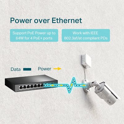 When total power consumption exceeds 64 W, the intelligent power management will cut the lower priority port power. This ensures the high priority port’s power supply and protects the device from power overload. It also automatically detects and provides the required power for your PoE devices while protecting your PoE and non-PoE equipment from being damaged.