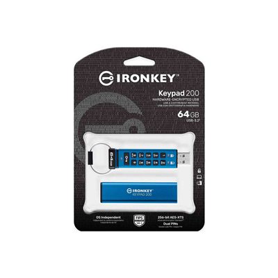 Kingston IronKey Keypad 200 IKKP200/64GB Encrypted USB Flash Drive, 64GB, USB-A Connection, FIPS 140-3 Level 3 with XTS-AES 256-bit Hardware Encryption