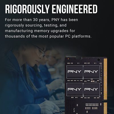 Want to work with the latest memory-intensive applications like graphic design and video-editing tools? Like to keep lots of browser windows open for work, school, or play? Is your PC having trouble keeping up? A DDR4 3200MHz memory upgrade from PNY gives you the speed you need to get the most out of your current Windows notebook PC. For more than 35 years, PNY has been rigorously sourcing, testing, and manufacturing memory upgrades for thousands of the most popular